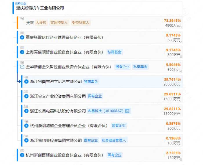 企查查显示,张雪机车注册资本为6540万元。张雪持股73.39%。今年3月初,张雪机车完成A轮融资。有报道称,该轮融资实际到位资金9000万元,公司投后估值约10.9亿元。