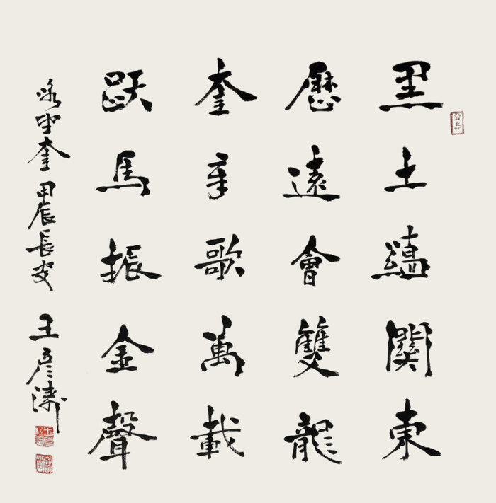 王彦涛饱含了多年的文化积累,他从文学、历史、哲学等多种文化范畴,在皇天后土的三秦大地上吸取营养,从而构成了他独特的审美视角。他认为只有品格高尚、超凡脱俗、知识渊博,才能在书法领域走得更远。他始终以豁达的态度包容一切,在他的书法作品中则浸渗出一种豪迈高雅,挥洒自如,从而表现出中华民族奋发向上的博大精神。