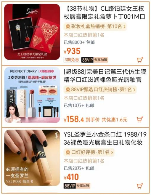 即便像路铂廷这样的奢侈美妆品牌也难以独善其身,其核心单品女王权杖口红虽知名度极高,但由于其价格等因素,销量远不及平价国货及其他国际一线品牌。