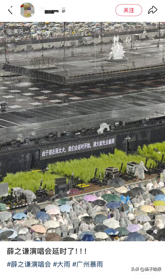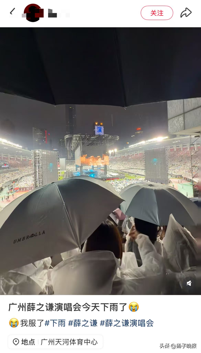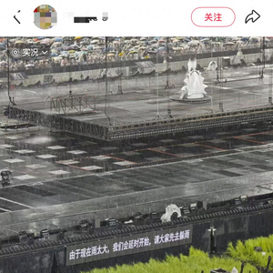 由于雨太大,演唱会被迫延时,让粉丝先去躲雨。有现场粉丝称第一次不羡慕内场的演唱会,连雨衣都撑不住了,一整个水灾现场。