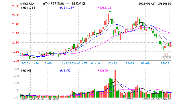 3月27日矿业ETF国泰(561330)份额减少200.00万份,最新份额12.87亿份,最新规模25.62亿元
