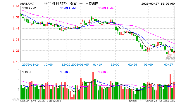 3月27日恒生科技ETF汇添富(513260)份额增加1000.00万份,最新份额57.47亿份,最新规模68.29亿元