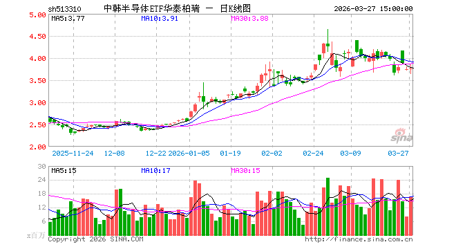 3月27日中韩半导体ETF华泰柏瑞(513310)份额增加300.00万份,最新份额18.11亿份,最新规模55.20亿元