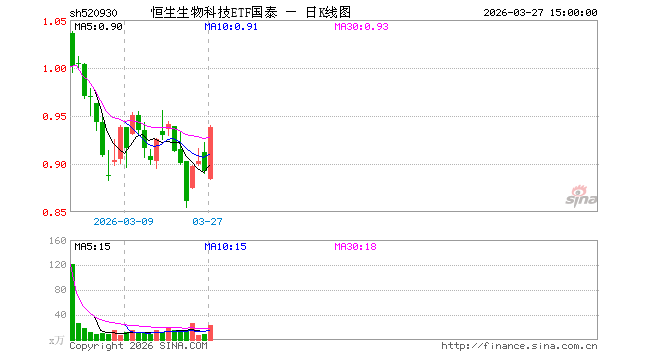 3月27日恒生生物科技ETF国泰(520930)份额减少100.00万份,最新份额2.03亿份,最新规模1.91亿元