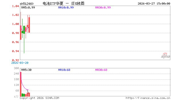电池ETF华夏(512460)业绩比较基准为中证电池主题指数收益率,管理人为华夏基金管理有限公司,基金经理为刘蔚,成立(2026-03-11)以来回报为1.14%。