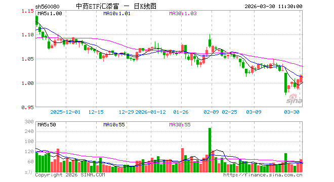 中药ETF汇添富(560080)涨0.79%,半日成交额7357.85万元
