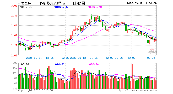 3月30日,截止午间收盘,科创芯片ETF华安(588290)跌0.43%,报2.326元,成交额1.46亿元。科创芯片ETF华安(588290)重仓股方面,中芯国际截止午盘跌1.65%,海光信息跌2.22%,寒武纪跌1.26%,澜起科技跌1.52%,中微公司涨3.26%,拓荆科技涨2.25%,芯原股份跌0.48%,华虹公司跌1.40%,沪硅产业跌1.19%,东芯股份跌1.42%。