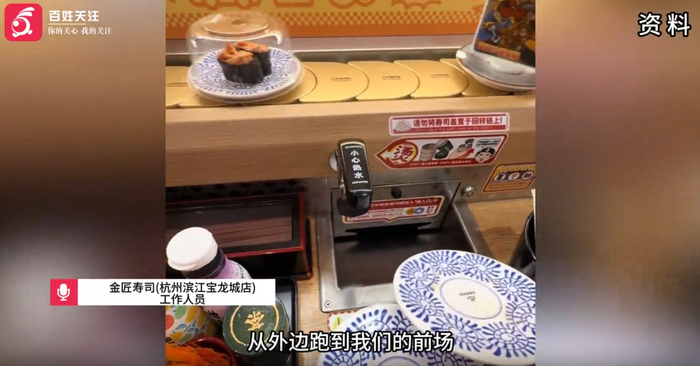3月29日,有顾客发帖称在浙江杭州一金匠寿司就餐时,看见一只老鼠在回转寿司的传送带上奔跑。