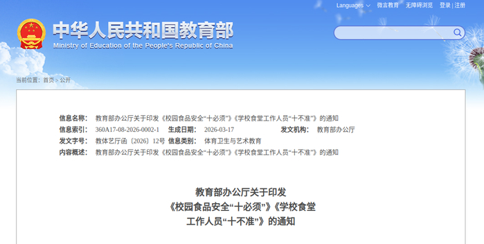 为贯彻落实习近平总书记关于食品安全“四个最严”要求,贯彻落实党中央、国务院决策部署,巩固深化“校园餐”专项整治成果成效,持续加强校园食品安全管理,强化学校食堂一线工作人员安全意识,规范从业人员操作流程,现将《校园食品安全“十必须”》《学校食堂工作人员“十不准”》印发给你们,请指导本地各级教育行政部门和学校认真学习,加强宣传。鼓励将《校园食品安全“十必须”》张贴于学校食堂管理人员办公区,将《学校食堂工作人员“十不准”》张贴于学校食堂工作场所。