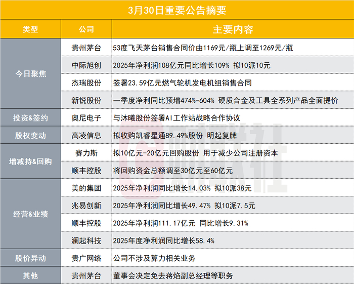 上调至1269元/瓶!贵州茅台发布涨价公告|盘后公告集锦