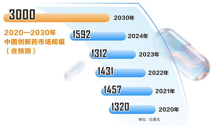 历经多年发展,中国生物医药产业综合实力已稳居全球前列,并正逐步实现由“量变”积累向“质变”跃迁的关键跨越。综合前瞻产业研究院、弗若斯特沙利文等机构数据,2030年,中国创新药市场规模有望突破3000亿美元,全球占比继续提升。