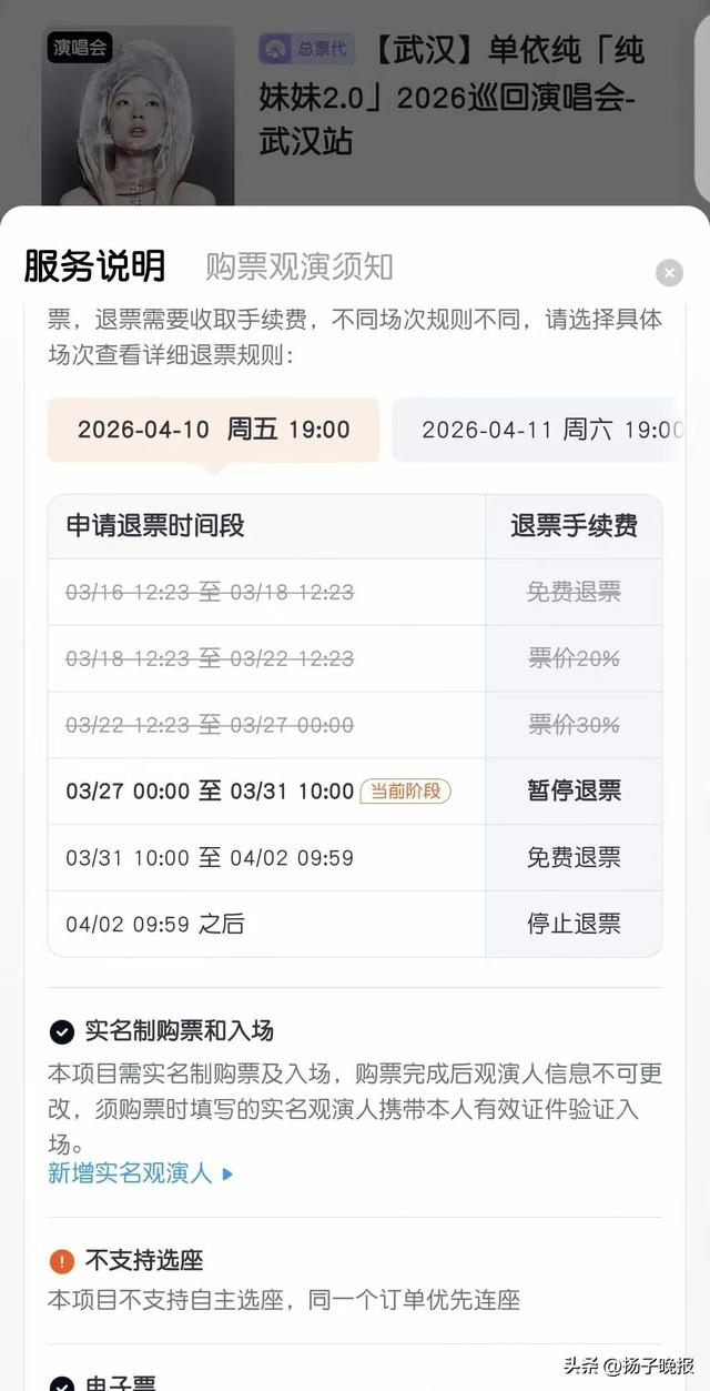 单依纯演唱会48小时限时退票:无任何手续费,无任何扣款,无责无损