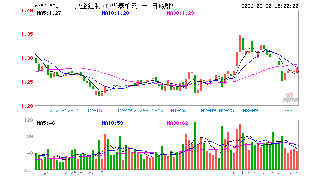 3月30日央企红利ETF华泰柏瑞(561580)份额减少350.00万份,最新份额11.96亿份,最新规模15.30亿元