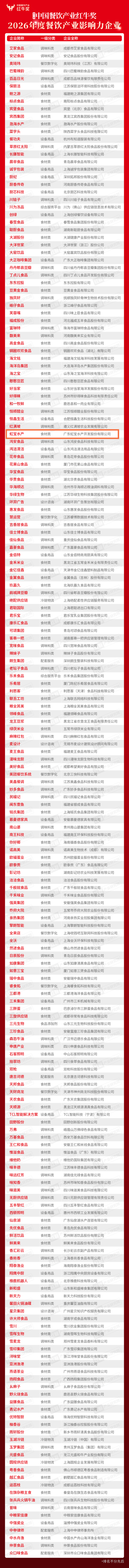 2026年度餐饮供应链百强企业