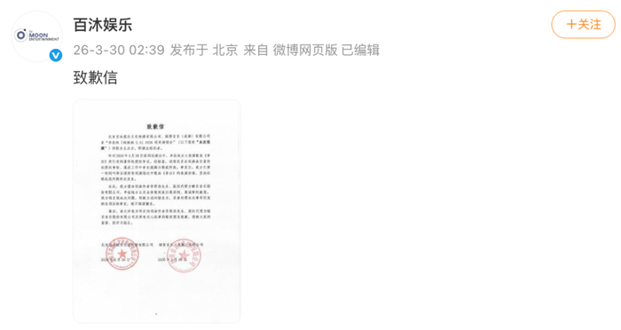 3月30日凌晨2点多,本次巡演的联合主办方百沐娱乐和阔景音乐(成都)有限公司发布致歉信,称经核查单依纯表演歌曲《李白》所引发的著作权授权争议,该情况系在巡演曲目著作权授权审核、落实工作中存在疏漏与瑕疵所致。事发后,已第一时间叫停后续所有巡演场景中歌曲《李白》的表演安排。