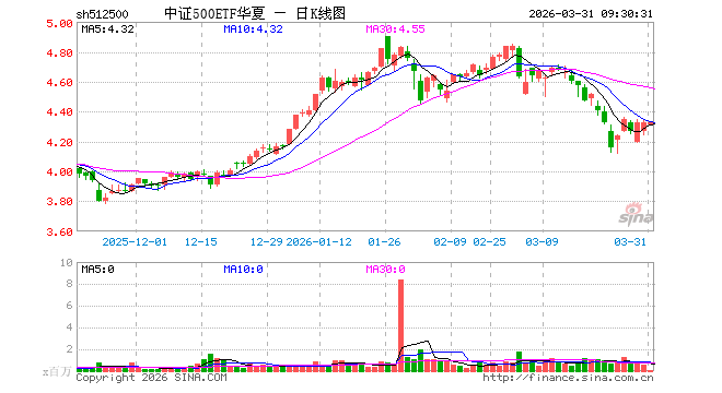 中证500ETF华夏(512500)开盘跌0.35%,重仓股英维克跌0.98%,信维通信跌0.30%