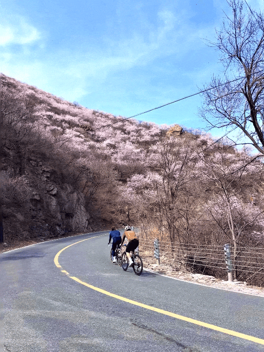 前往景区的路上,皆是治愈系风景。起点从妙峰山镇牌楼出发,沿途蜿蜒山路依山而建,一侧是连绵青山,一侧是幽深山谷,春日里沿途山花烂漫,山桃、山杏次第盛开,粉白相间点缀山间,微风拂过满是花香,全程像是穿梭在天然画廊里,自驾、骑行都格外惬意。