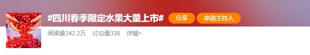 近期,四川春季水果市场迎来今年首波“甜蜜暴击”。今天,话题“四川春季限定水果大量上市”登上热搜。