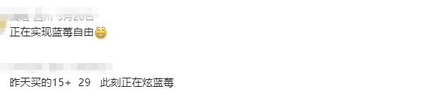 在盒马鲜生等网购平台,蓝莓的价格也有所下降,根据果子大小不同,价格大概在每斤30—70元不等。不少网友表示,实现蓝莓自由。