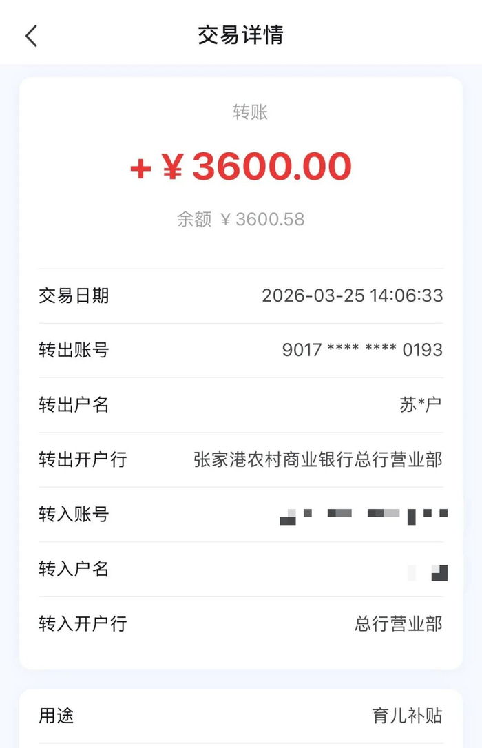 到账啦!江苏多地育儿补贴已发放,3600元/年!