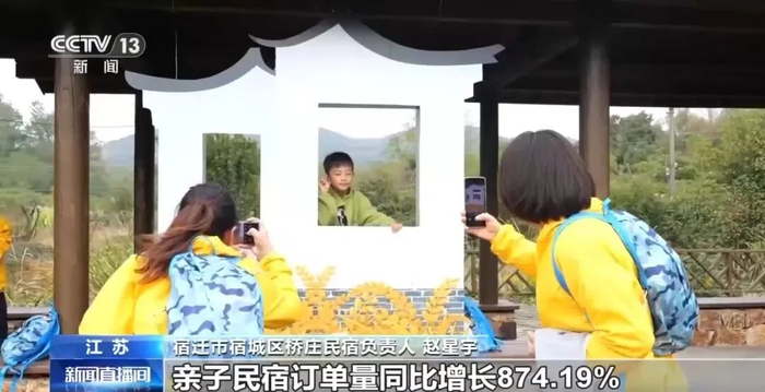 宿迁市宿城区桥庄民宿负责人 赵星宇:数据显示,我们民宿春假相关旅游产品搜索预订量较去年同期上涨超150%,亲子民宿订单量同比增长874.19%,家庭房供不应求。