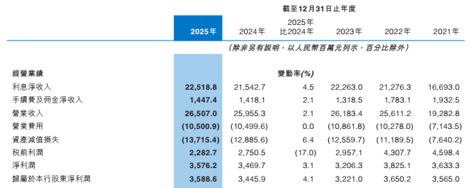 2025年,中原银行实现营收265.07亿元,同比增幅2.1%;归母净利润35.89亿元,同比增幅4.1%。