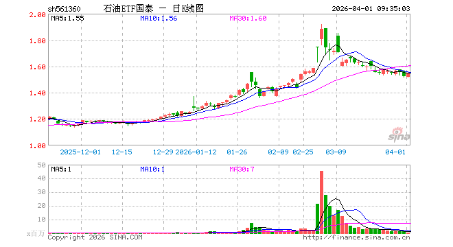 石油ETF国泰(561360)开盘跌0.33%,重仓股中国石油跌1.48%,中国海油跌2.27%
