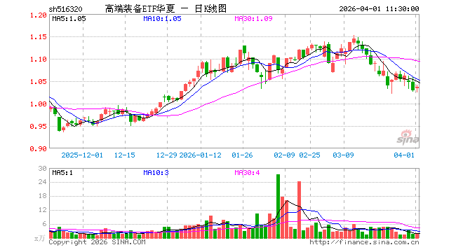 4月1日,截止午间收盘,高端装备ETF华夏(516320)涨0.68%,报1.036元,成交额179.16万元。高端装备ETF华夏(516320)重仓股方面,宁德时代截止午盘涨1.01%,阳光电源跌10.72%,中国船舶涨0.55%,汇川技术涨1.58%,三一重工涨4.27%,特变电工涨0.53%,隆基绿能涨1.65%,徐工机械涨3.57%,思源电气涨2.38%,潍柴动力涨4.25%。