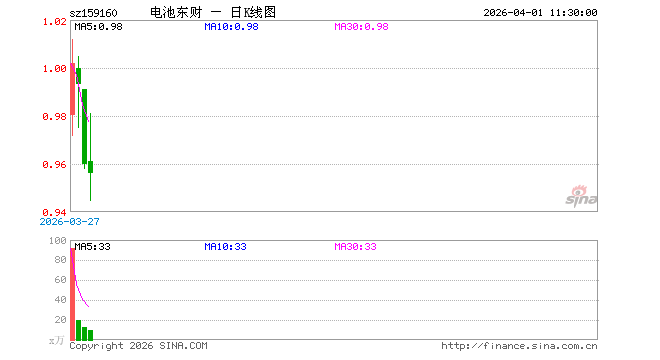 电池ETF东财(159160)业绩比较基准为中证电池主题指数收益率,管理人为东财基金管理有限公司,基金经理为赵肖萌,成立(2026-03-19)以来回报为-4.24%。