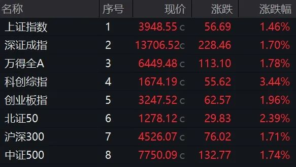 4月1日,A股大幅高开反弹,科创综指大涨3.44%,上证指数收复3900点,沪深300重新站上4500点,创业板指也回到3200点之上。超4500只个股上涨,成交2.02万亿元。