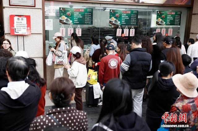 4月1日,顾客在新雅粤菜馆(南京东路店)排队购买青团。清明节将至,在南京东路步行街上,上海的各家老字号品牌商店青团销售火爆。中新社记者 殷立勤 摄