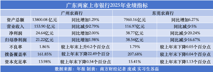 近日,广东两家港股上市银行——广州农商行(01551.HK)、东莞农商行(9889.HK)相继披露2025年业绩公告。