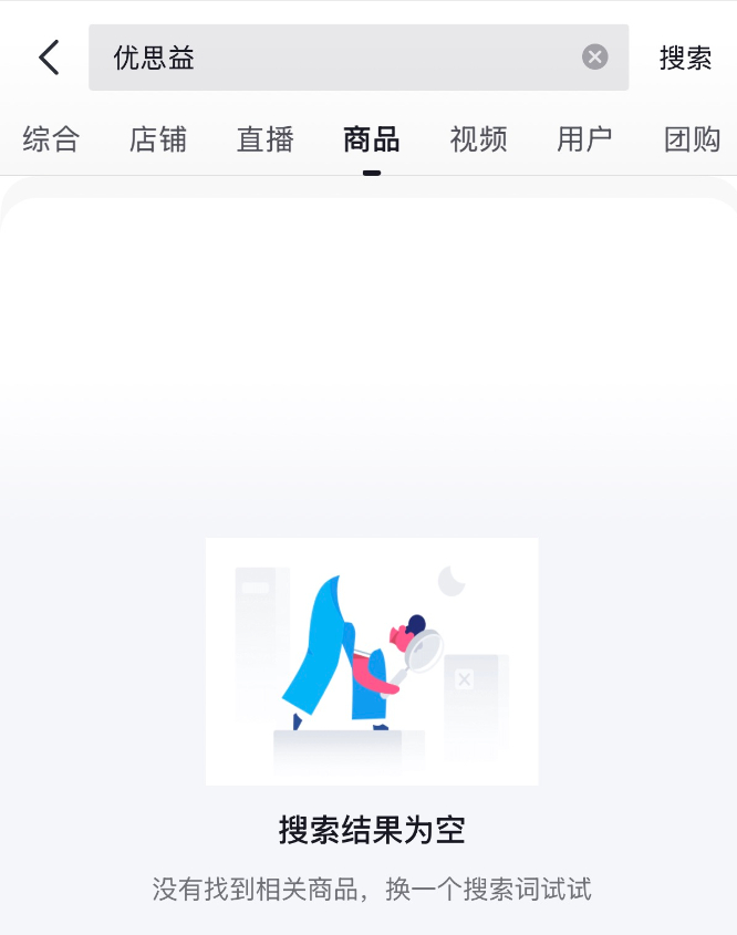 目前,记者在多个电商平台搜索“优思益”,均找不到相关产品。