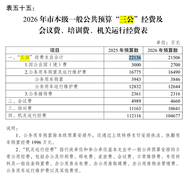 盐城也出现了类似情况。在2026年2月公布的《江苏省盐城市2026年预算草案说明》中提到,“2026年市级一般公共预算安排的‘三公’经费总额4912万元,比2025年预算数5147万元减少235万元,下降4.57%”。然而,在2025年2月公布的《江苏省盐城市2025年预算草案说明》中,写到“2025年市级一般公共预算安排的‘三公’经费总额4732万元,比上年预算5138万元减少406万元,下降7.8%。”