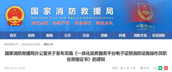 4月1日起,消防设施操作员职业资格证书电子证照启用