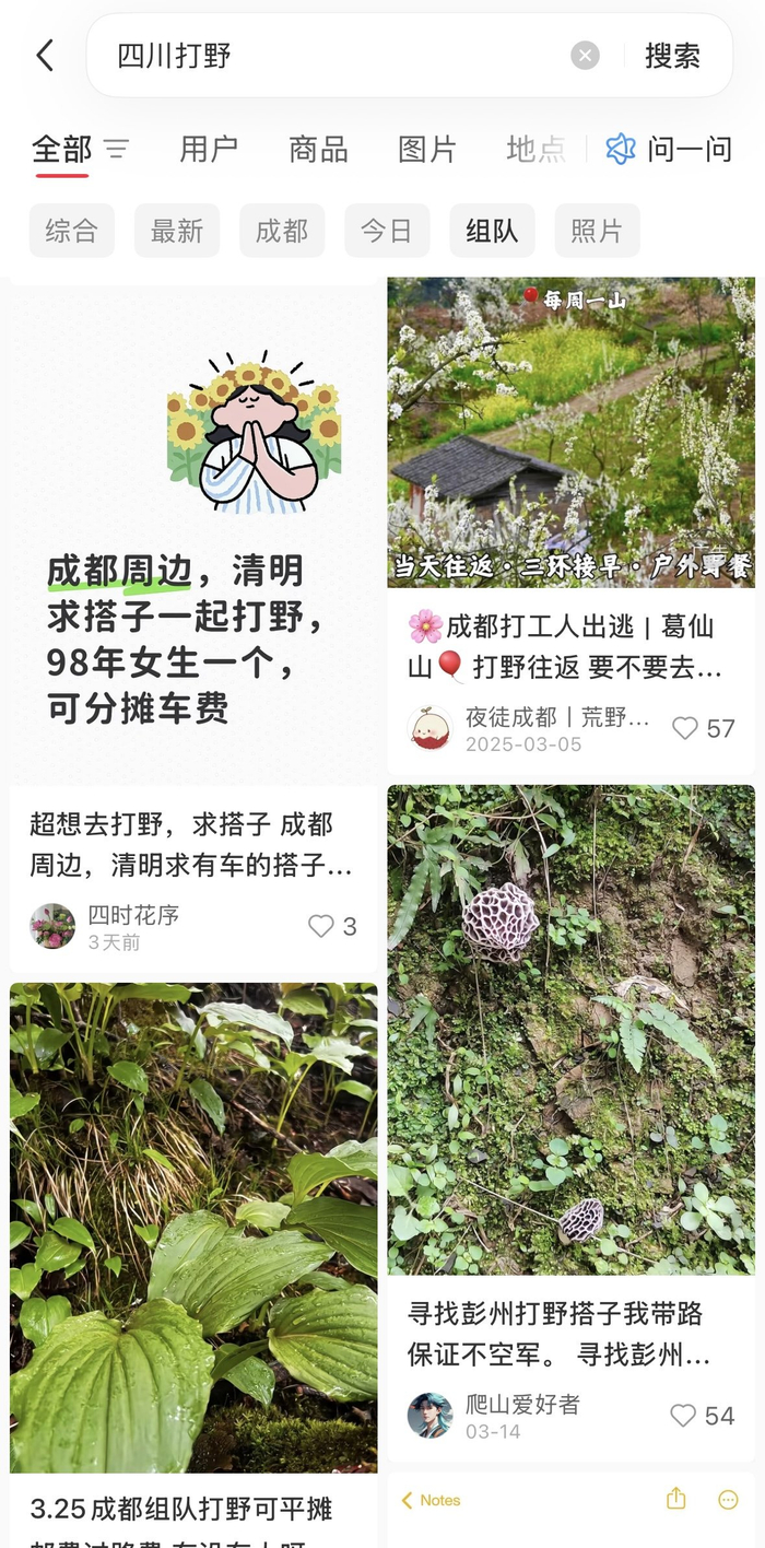 年轻人的追捧,催生出越来越标准的“打野”团。博主@自由者不二家旅行介绍,仅4月1日至6日,就推出40多个“徒步+打野”线路,价格在50元至100元不等,包含车费、门票与清洁费,30人即可成团。