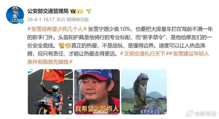 张雪宁愿少卖10%,也要把大排量车拦在驾龄不满一年的新手门外。头盔和护具是他骑行的专业标配,而“新手禁令”,是他给摩友们的一份安全底线。真正的热爱,不是放纵,是懂得边界。速度可以让人热血沸腾,但只有责任,才能让热爱走得更远。