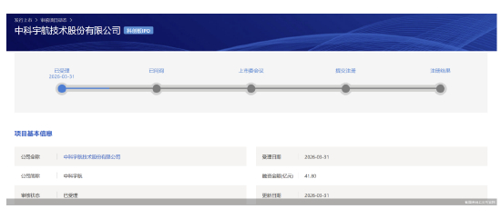 上交所3月31日受理了中科宇航科创板IPO申请后,4月1日晚间,中国证券业协会官网披露了2026年第二批首发企业现场检查抽签名单,公司被抽中现场检查。
