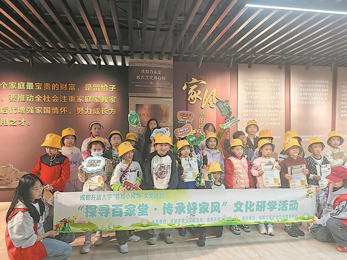 在成都百家堂姓氏文化博物馆,另一场“探寻百家堂·传承好家风”文化研学活动同样热闹展开。孩子们走进姓氏文化的世界,聆听代代相传的家风故事,在一脉相承中感受中华家风的深厚底蕴。刷墨、覆纸、压印、写寄语……在一道道动手操作中,他们将“家风印迹”拓印在纸上,也将文化传承的种子带回家中。
