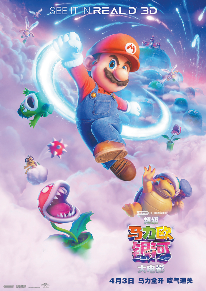 作为今年好莱坞动画重头戏,《超级马力欧银河大电影》不只是依靠经典游戏吸引那些对“超级马力欧”素有情怀的玩家,还有更广阔的合家欢市场。3年前的《超级马力欧兄弟大电影》全球票房收获13.6亿美元,这部《超级马力欧银河大电影》作为原班人马打造的续集,视觉效果更炫目——马力欧兄弟和碧姬公主不仅来到宇宙,还遇见了酷霸二世、耀西等电影新角色、玩家老朋友,再度开启一场冒险。