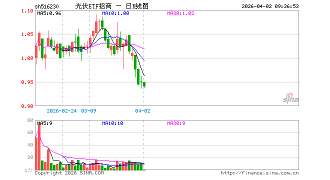 4月2日,光伏ETF招商(516230)开盘涨0.21%,报0.950元。光伏ETF招商(516230)重仓股方面,特变电工开盘涨0.15%,隆基绿能跌0.50%,TCL科技跌0.69%,阳光电源跌2.24%,迈为股份跌2.36%,通威股份涨0.66%,捷佳伟创跌2.35%,罗博特科涨0.00%,德业股份涨0.91%,正泰电器跌0.21%。