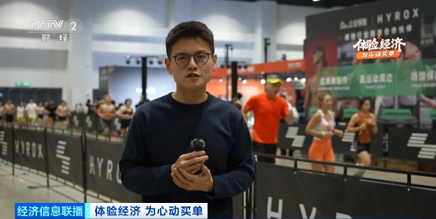 总台央视记者 苏童:场上绝大多数的“运动员”,实际上都是生活中最普通的健身爱好者,他们付费来参加这场比赛,不只是为了成绩和奖牌,更多的是感受这里的氛围,突破自己的勇气,还有收获一段拼搏故事。HYROX提供的不只是一段比赛,更是一场体验,以及围绕这个体验不断延伸的消费链条。