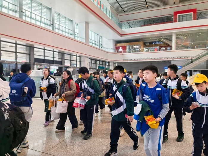 为匹配旅客多样化、个性化出行需求,铁路部门也打造了特色旅游与研学客运产品。贵阳客运段加开C5955次、D1717次列车,助力乐山至昆明、乐山至西安方向的研学团队出行。针对研学团队人数多、行李多的特点,列车工作人员在站台全程引导,车厢内协助定位行李、开展趣味安全小课堂,强化学生旅客出行安全提示,用通俗易懂的语言讲解乘坐高铁安全常识。为学生团体提供专属、安全、便捷的研学出行保障,让高铁成为连接学校与自然的移动课堂,为旅客春游提供丰富出行选择。