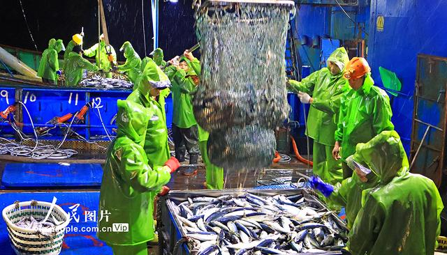 2026年3月31日晚,在浙江省玉环市大麦屿渔港码头,渔民们正忙着装卸新鲜海鱼。段俊利摄(人民图片网)