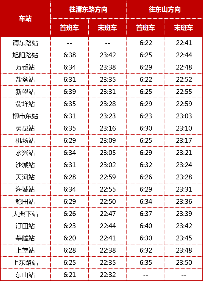 首末班车时间不变,具体如下: