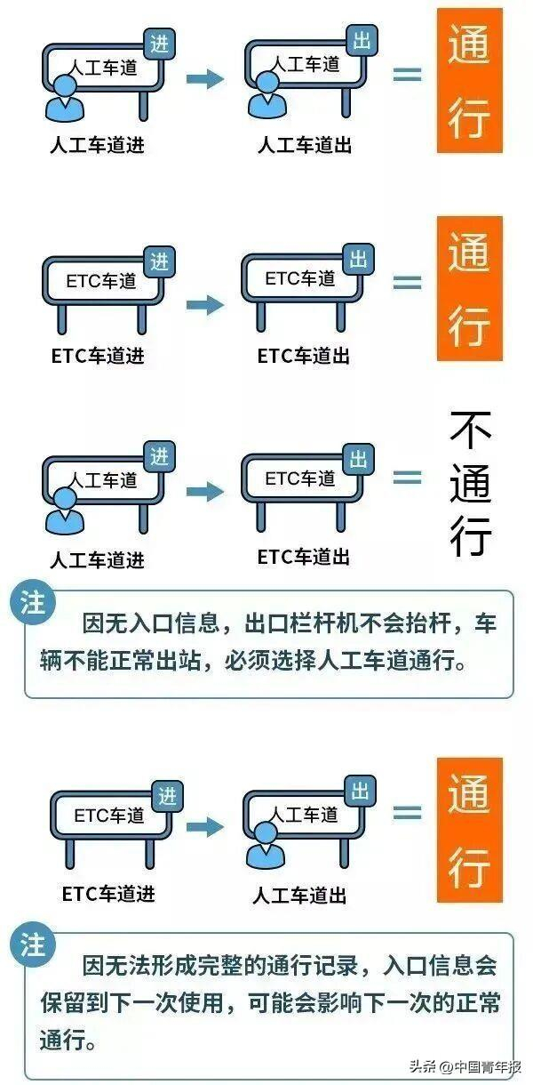 特别是在人工通道上的高速,下高速时不要选择ETC通道,否则将无法正常通行,因没有入口信息,出口栏杆机不会抬杆,只能折返至人工车道驶出。