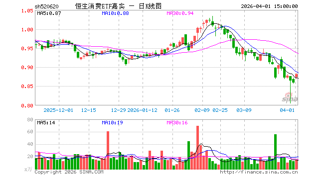 4月1日恒生消费ETF嘉实(520620)份额减少600.00万份,最新份额4.77亿份,最新规模4.21亿元