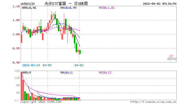 光伏ETF富国(560230)开盘涨0.00%,重仓股特变电工涨0.15%,隆基绿能跌0.50%