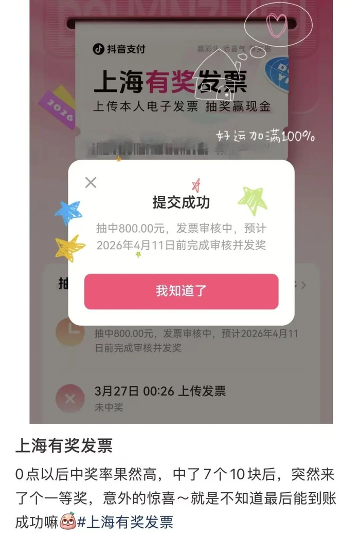 上传发票就可以参与抽奖
