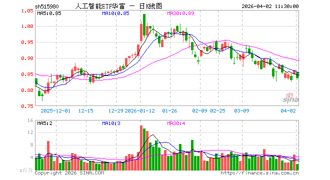 人工智能ETF华富(515980)跌3.02%,半日成交额1.63亿元